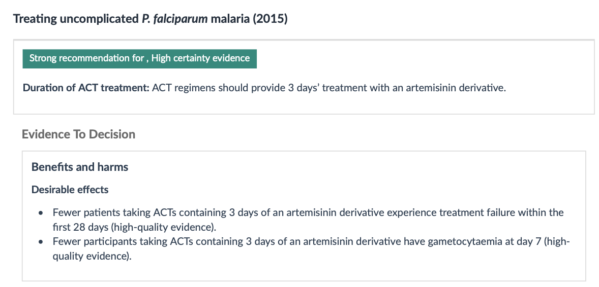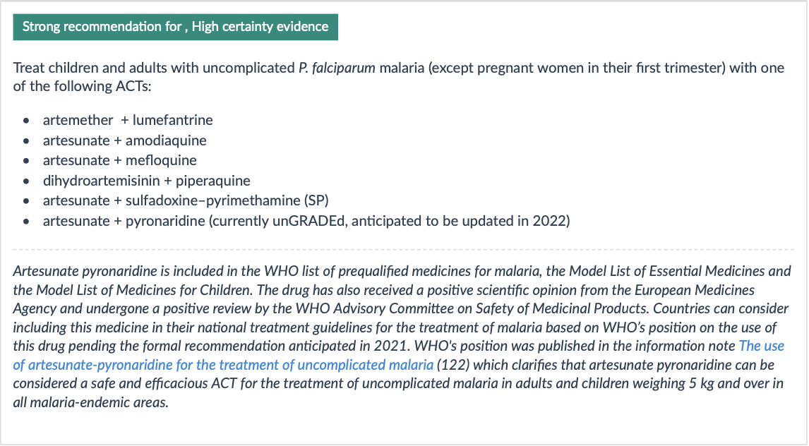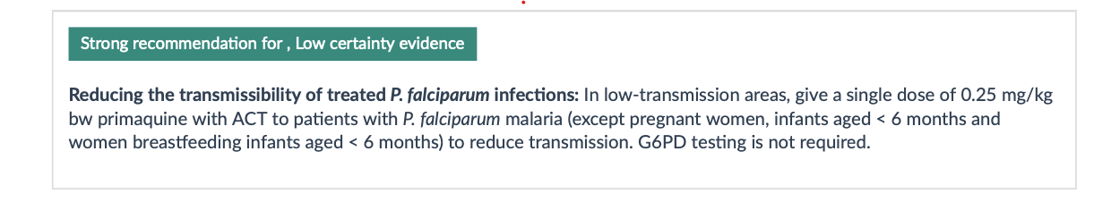 Failure :< 28 days: Persistent fever, parasitemia → treat with another ACT regimen effective in region. Treatment with same ACT considered if no second line regimens are available