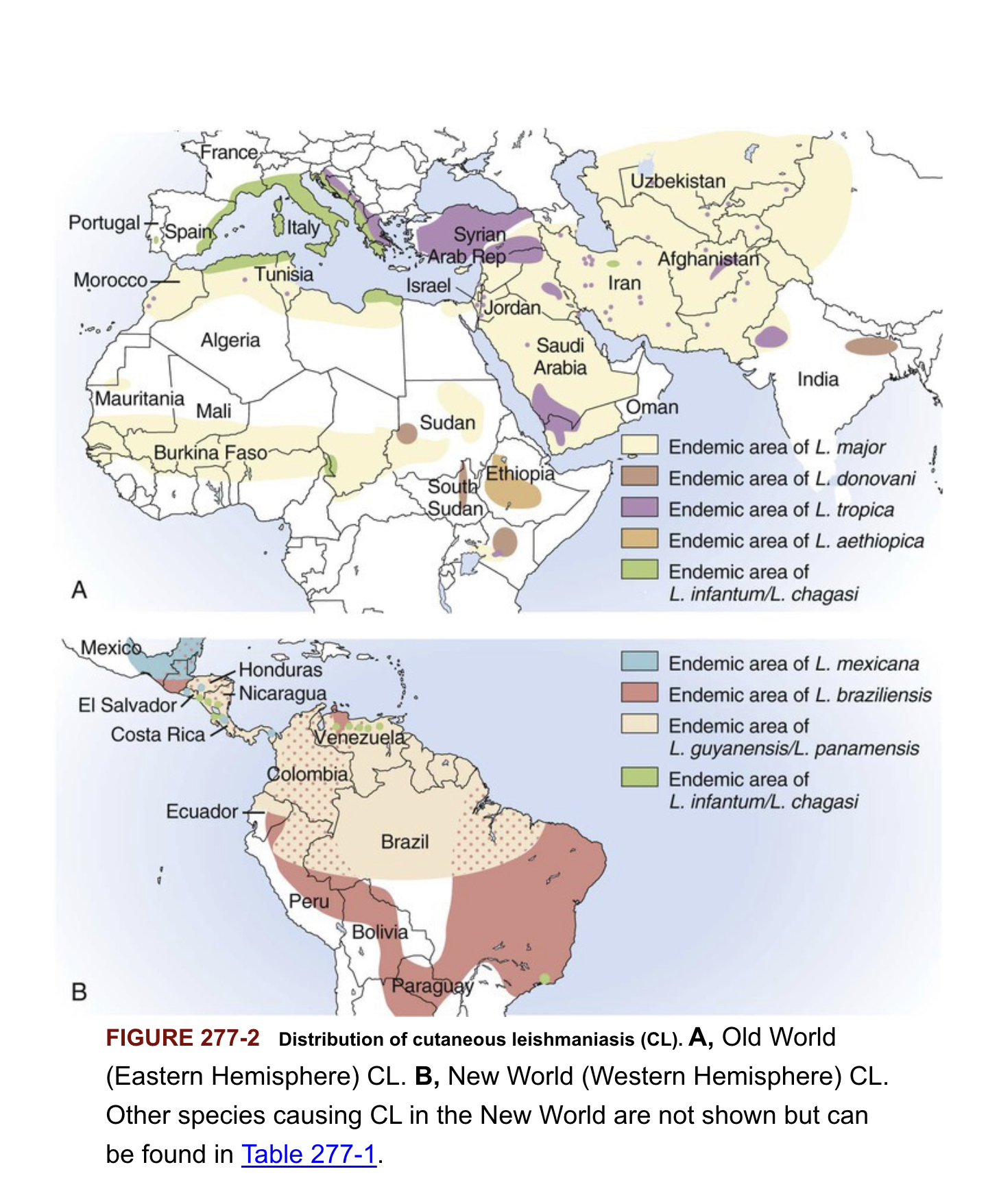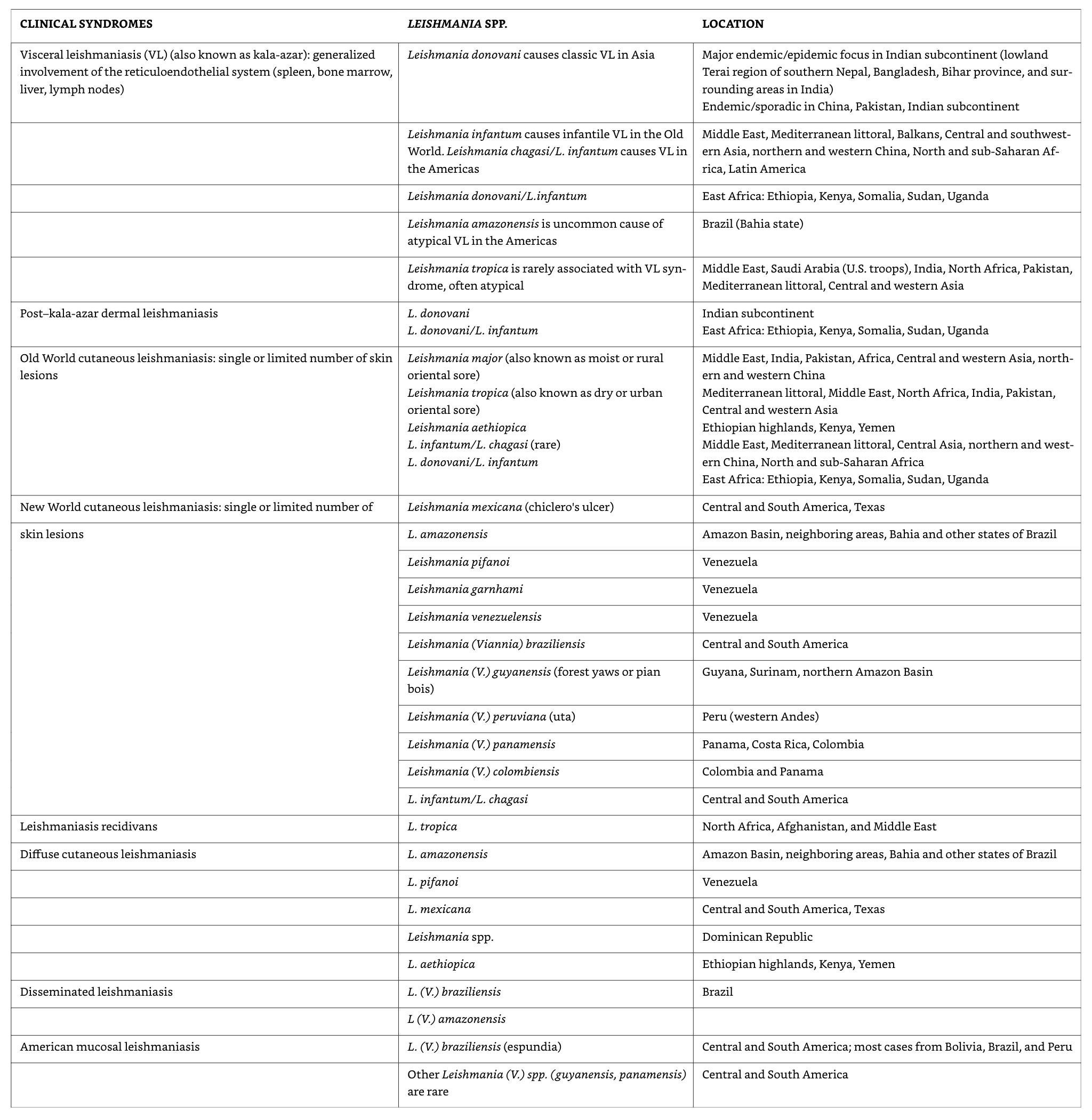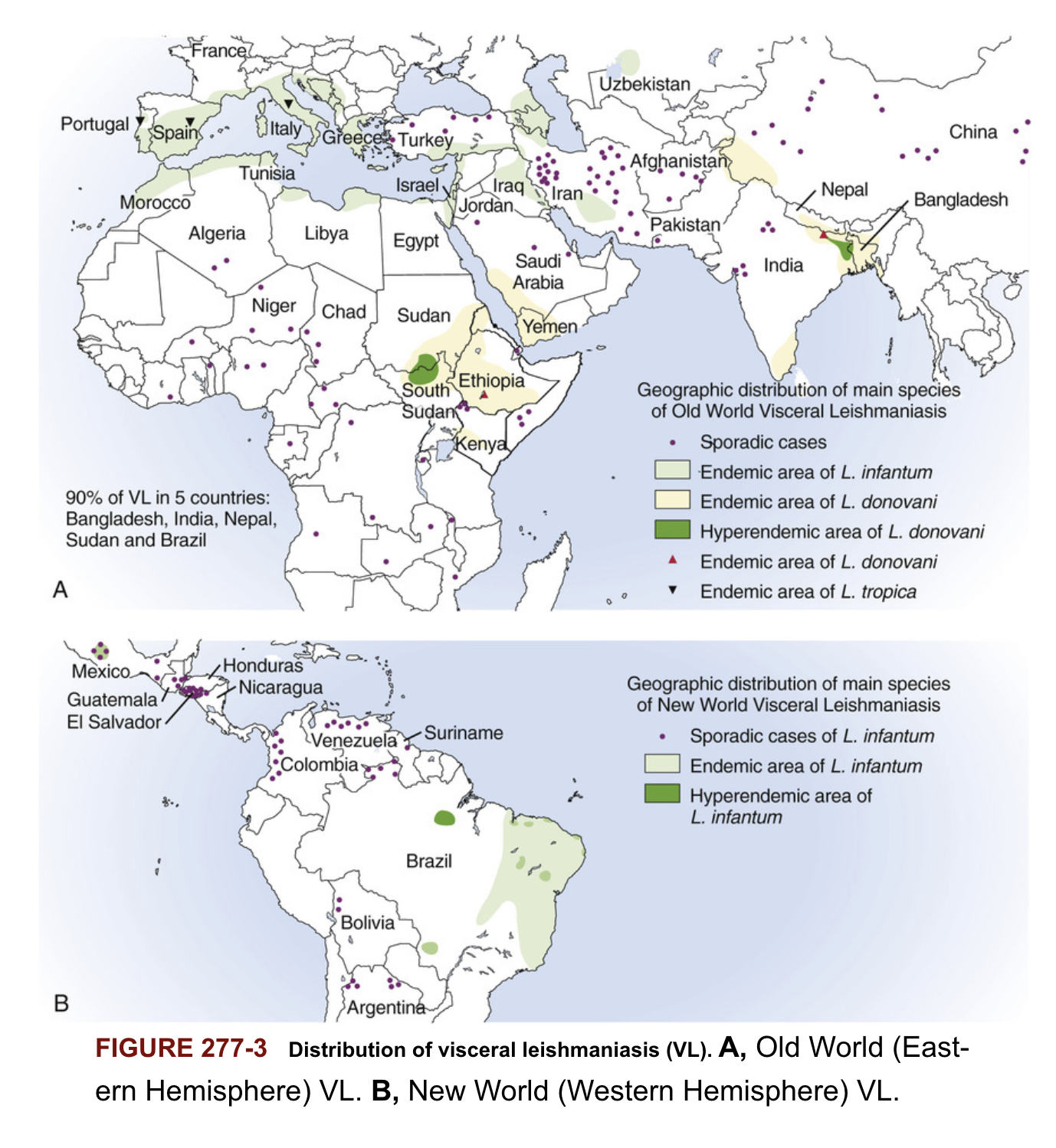 | Insect-borne* | African trypanosome (blood) | Plasmodium (liver, red blood cells) Leishmania (macrophage) South-America trypanosome (macrophage, muscle, nerve) |