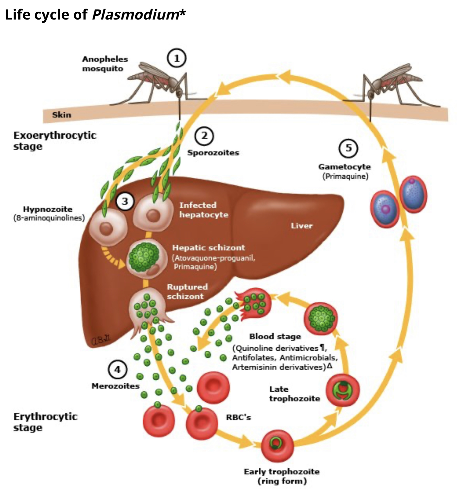 | P. vivax | 12-17 days | 48h (tertian) | Seldom fatal, but can better survive unfavourable temperatures and remain dormant in the liver |