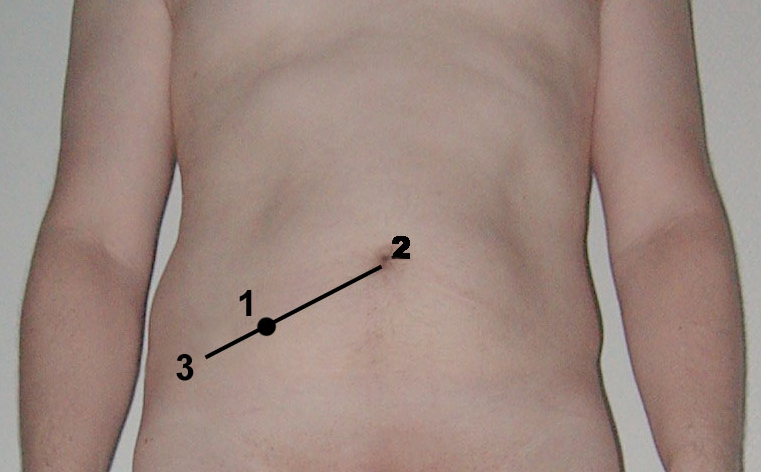 The clinical manifestations of acute appendicitis are distinctive and, in many cases, diagnostic. Appendicitis classically starts as colicky, visceral periumbilical pain that evolves for the next 6 to 24 hours to localized, somatic right lower quadrant abdominal pain after inflammation extends to the parietal peritoneum. If the inflamed appendix lies in the anterior position, tenderness is often maximal at or near the McBurney point, which lies two to three fingerbreadths above the right anterior superior iliac spine on a line with the umbilicus (Figure 3) (Wagner1996?).