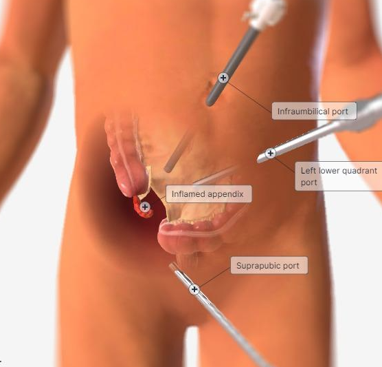 Surgical removal of the appendix, often performed laparoscopically, is curative. Laparoscopic appendectomy has become the standard of care and is associated with shorter hospital stays, less postoperative pain, and lower wound infection rates compared with open surgery.