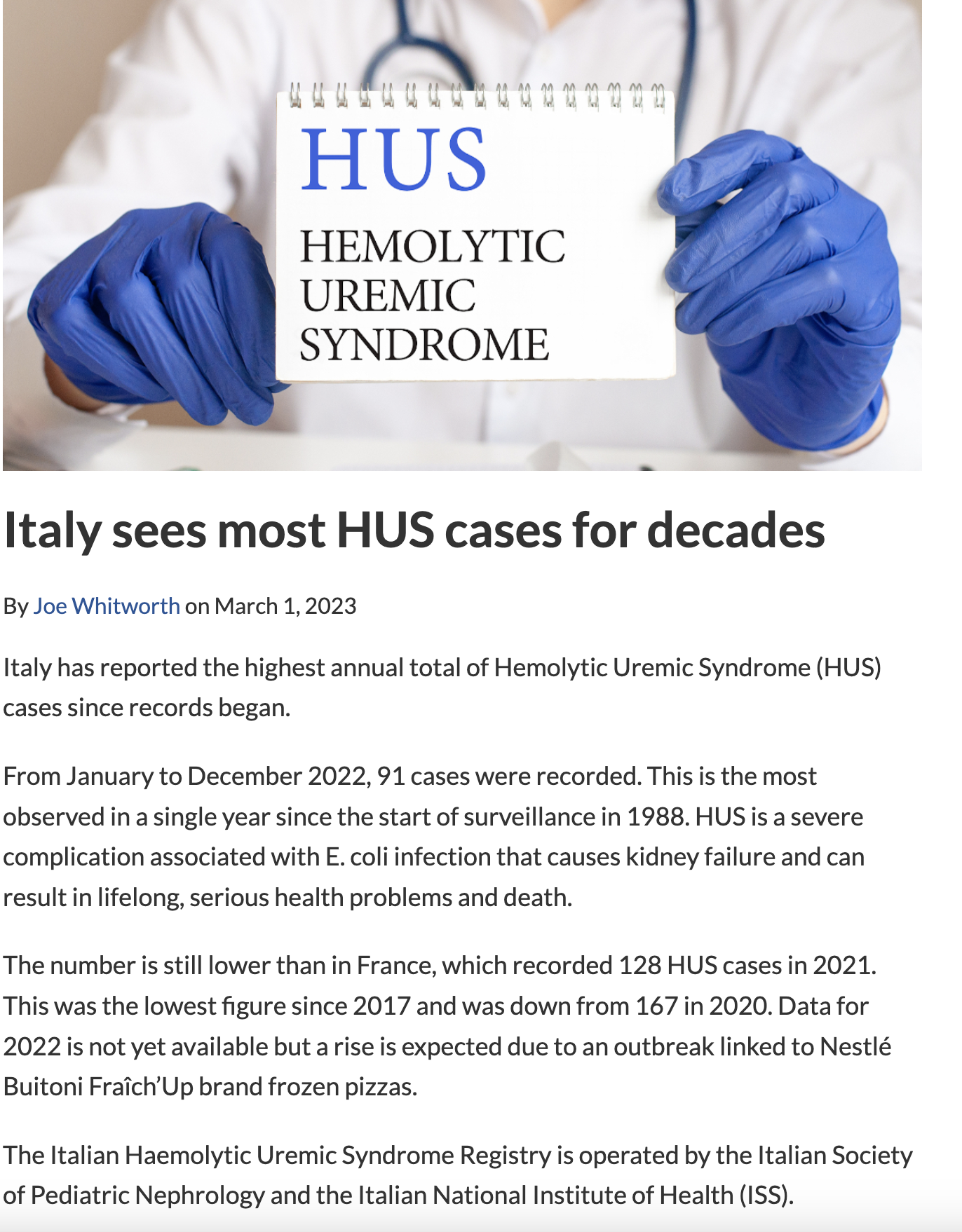 Main serotypes E. coli O157:H7 or E. coli O101:h4 (STEC)