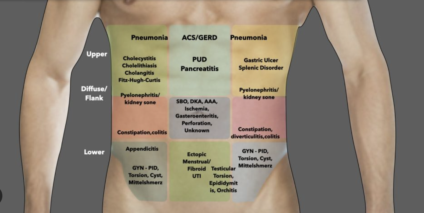 Abdominal examination should focus on signs that suggest ileus or peritonitis