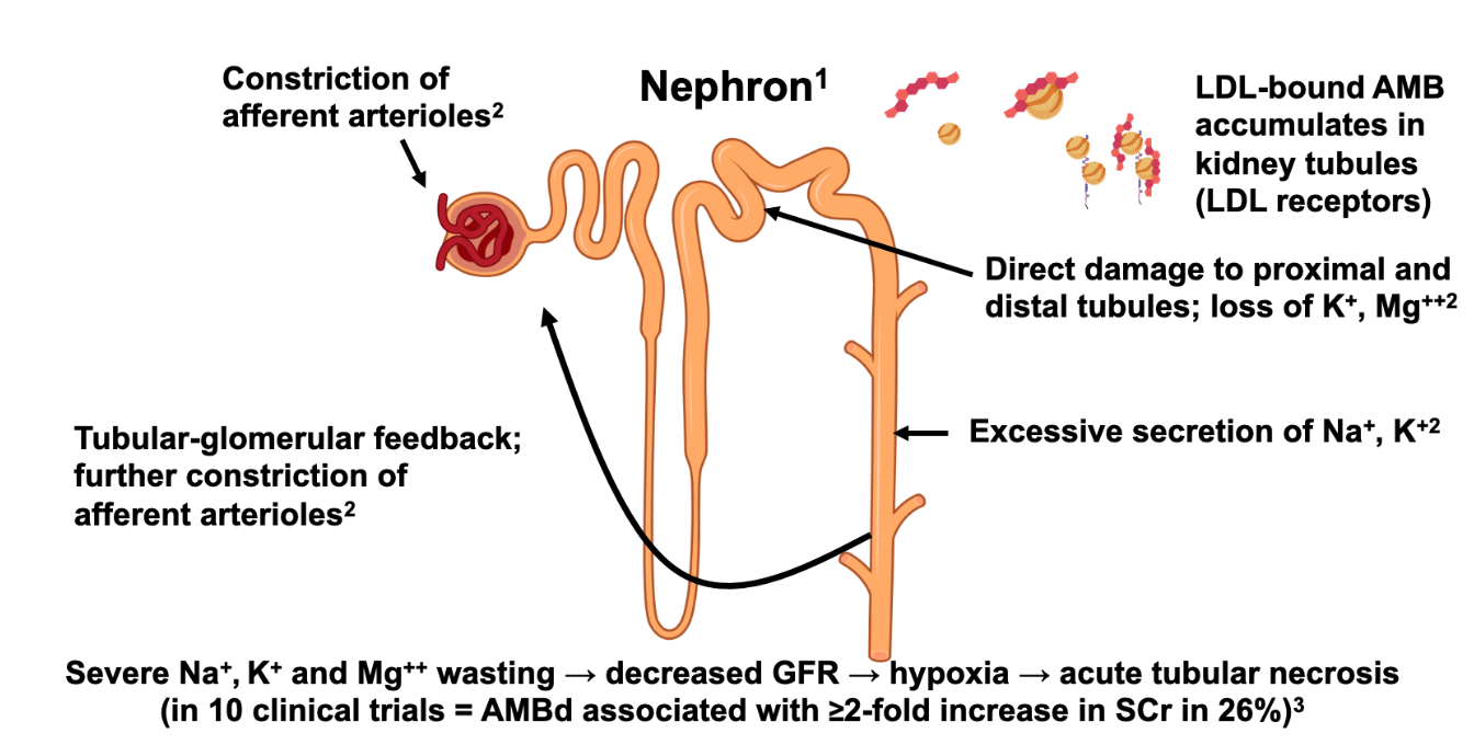- Direct tubular toxicity: LDL-bound AMB accumulates via LDL receptors