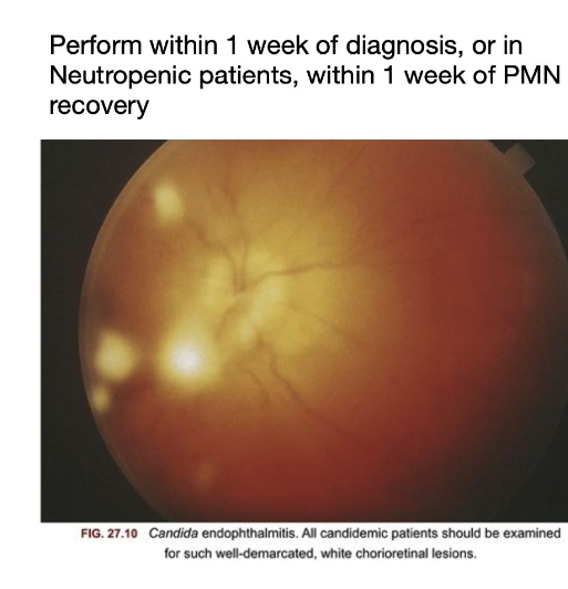 - Dilated eye exam for all patients with candidemia
