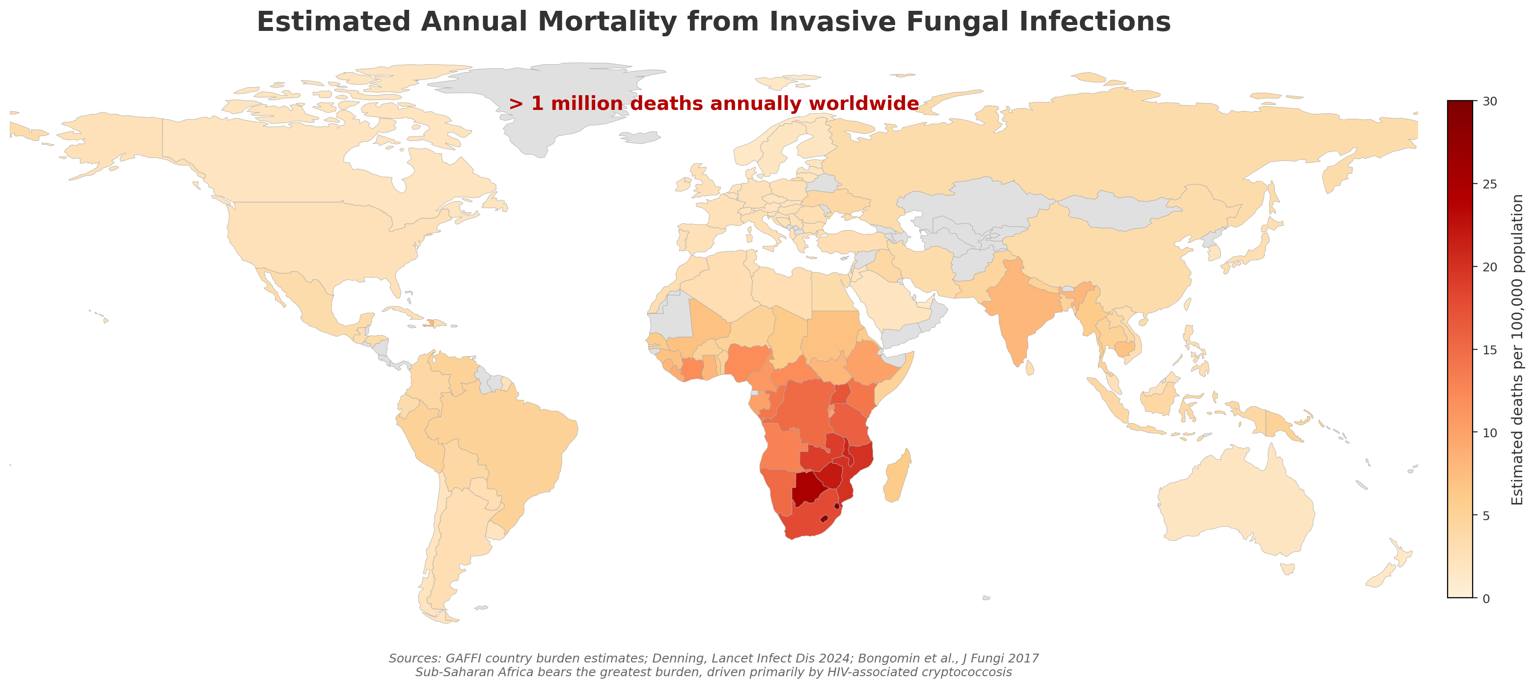 - Over 1 million deaths annually from invasive fungal infections worldwide