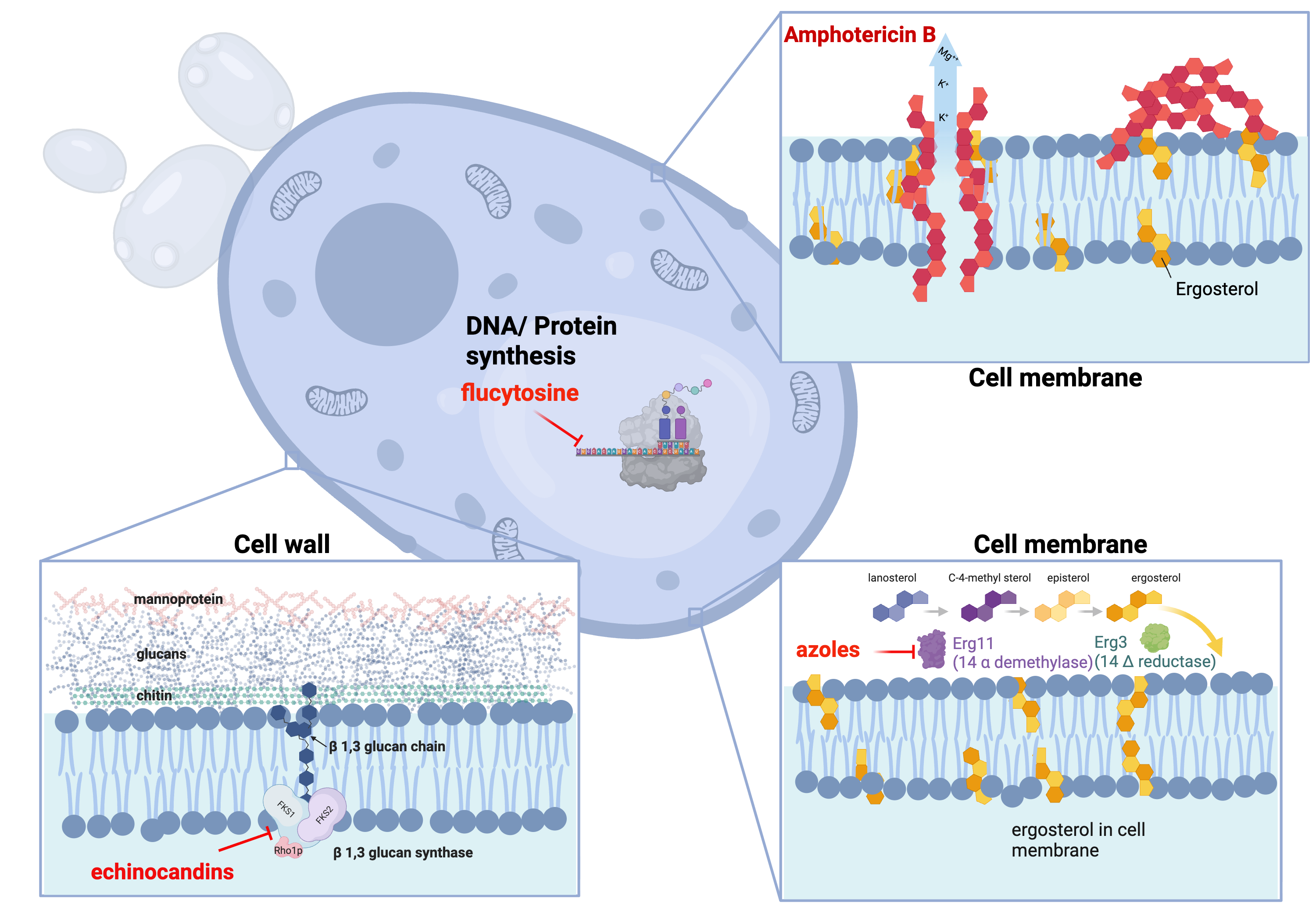 Antifungal agents target distinct components of the fungal cell: