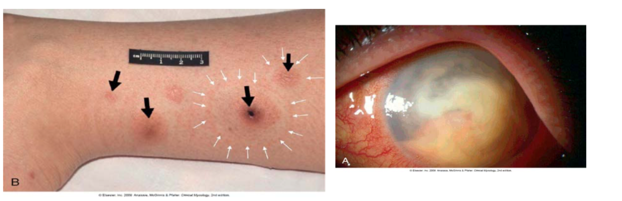 | Subcutaneous mycoses | Dermis, subcutaneous tissue | Sporotrichosis, chromoblastomycosis | Immunocompetent (trauma) |
