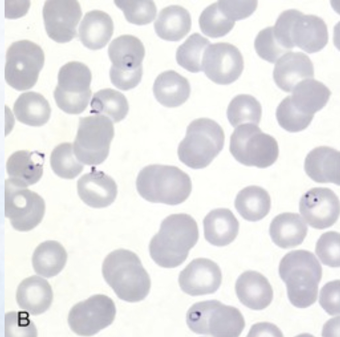 | Multiply infected erythrocyte containing containing signet-ring P. falciparum trophozytes | ![]() |