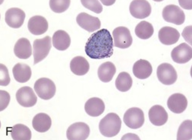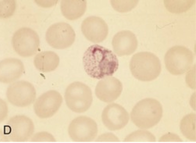 | | P. ovale trophozoite. Note Shuffner’s dots and ovoid shape of erythrocyte |