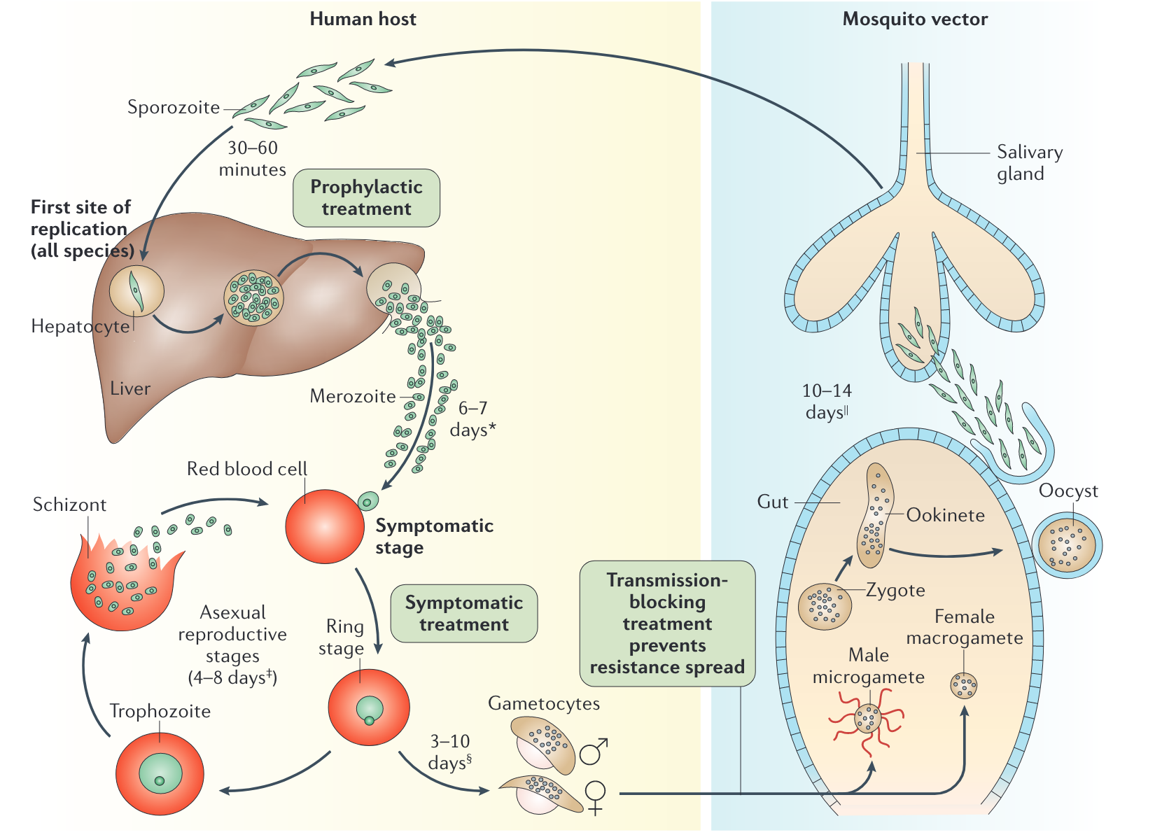 | P. vivax | 12-17 days | 48h (tertian) | Seldom fatal, but can better survive unfavourable temperatures and remain dormant in the liver |