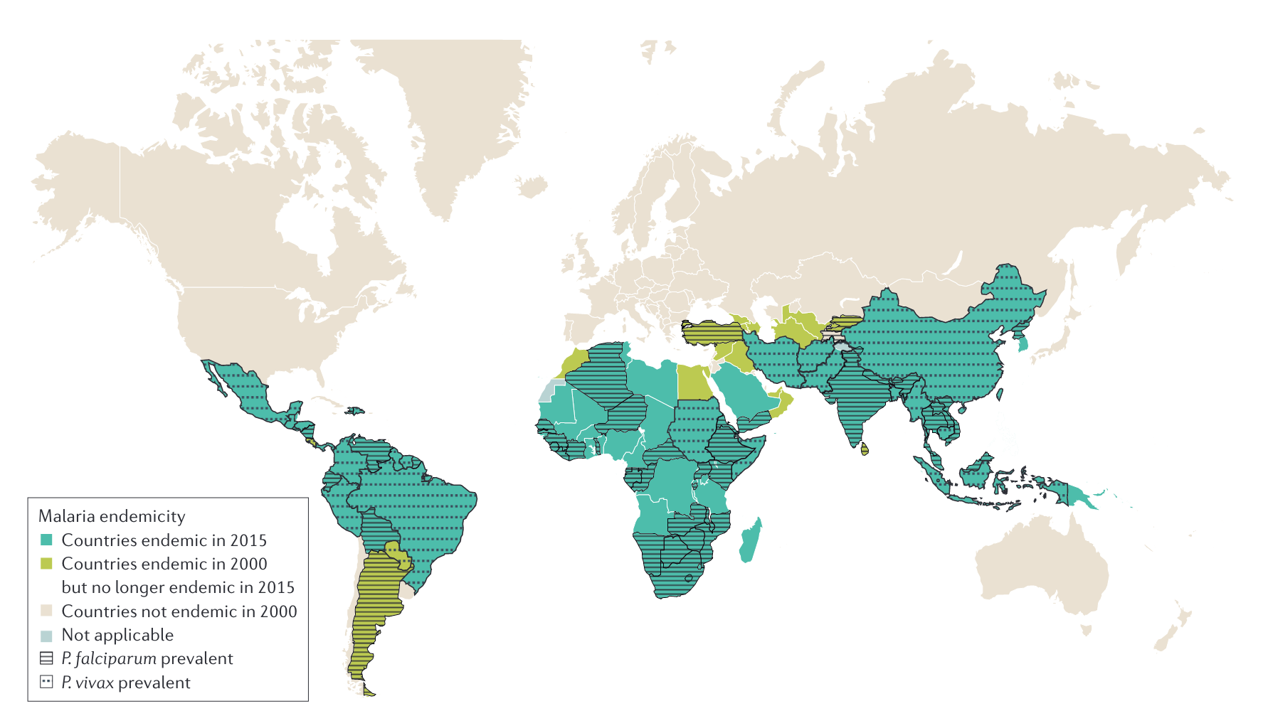Malaria was once prevalent throughout much of the inhabited world, but has been eliminated from the USA and Canada, Europe, and Russia (chloroquine-based treatment, large-scale insecticide using DDT)