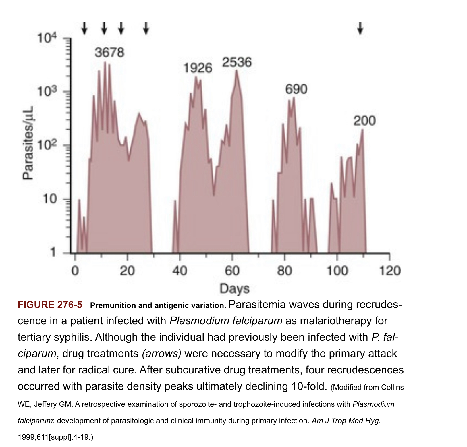 Immunity not sterilizing, instead “disease-controlling immunity” despite presence of parasites in bloodstream